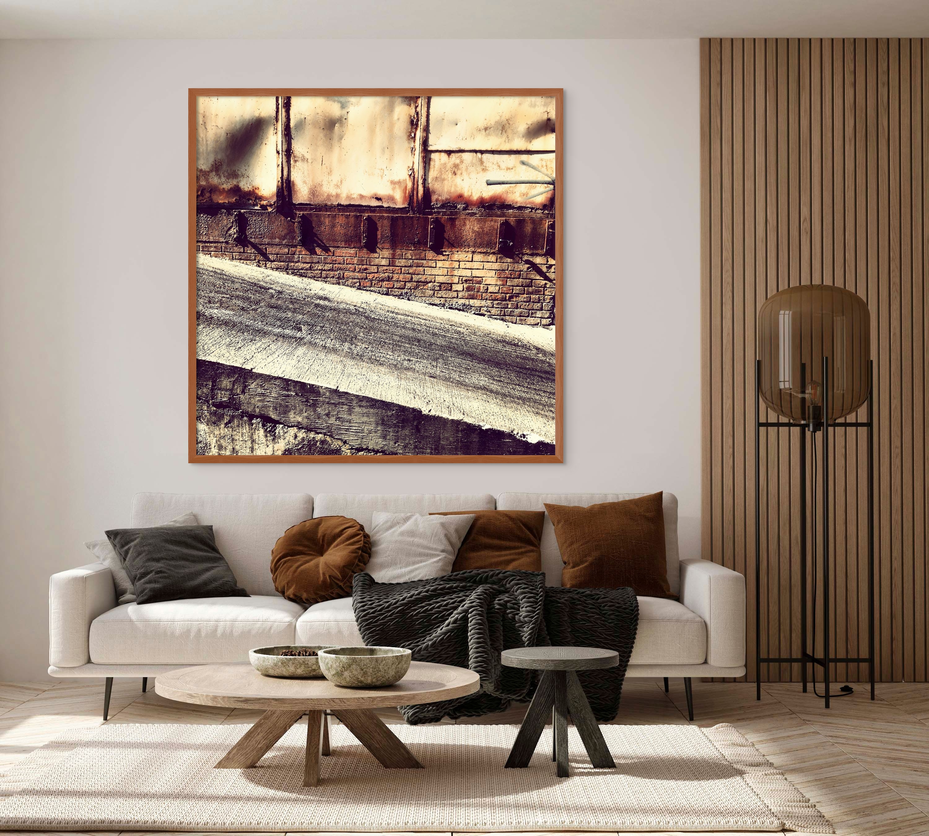 Overall, the photograph is a poignant study in texture, materiality, and the aesthetic beauty found in urban decay. The muted color palette and strong contrasts invite contemplation of both the physical and metaphorical effects of time on the built environment, making Rust & Time a compelling piece for reflection on industrial heritage and impermanence.