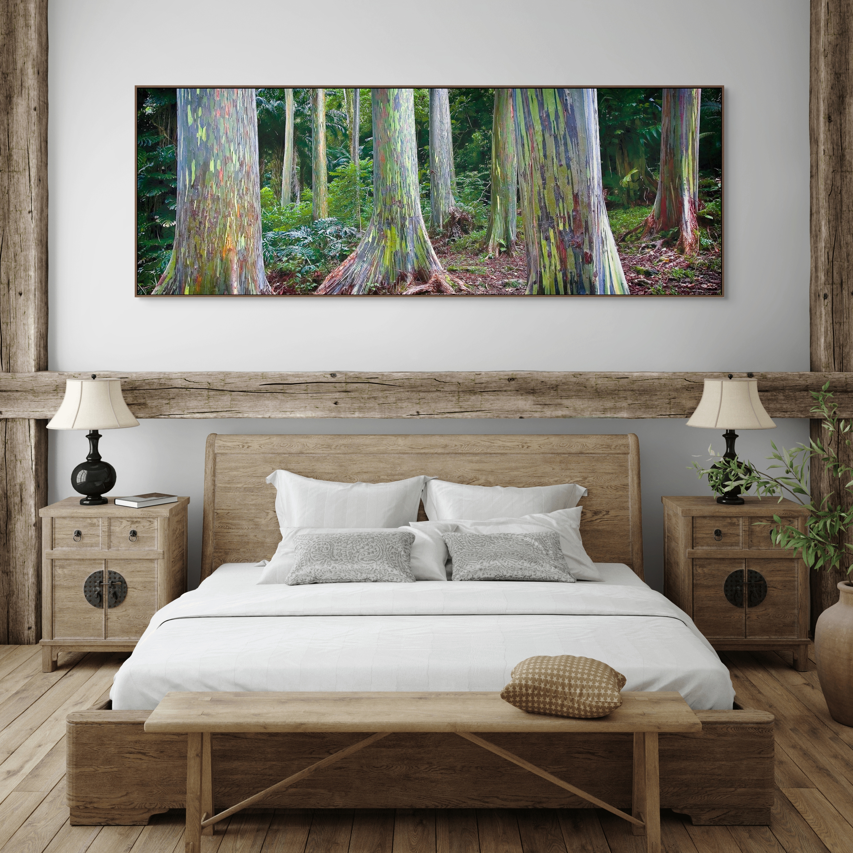 This photograph exemplifies the synergy between natural form and chromatic brilliance, evoking a serene yet dynamic atmosphere. It invites viewers to contemplate the inherent artistry within the natural world and the hidden vibrancy in seemingly everyday elements. The Rainbow Eucalyptus, native to the Philippines and parts of Indonesia and Papua New Guinea, is a striking botanical specimen whose visual appeal transcends botanical interest, entering the domain of fine art through the exquisite visual narrative of color and texture.