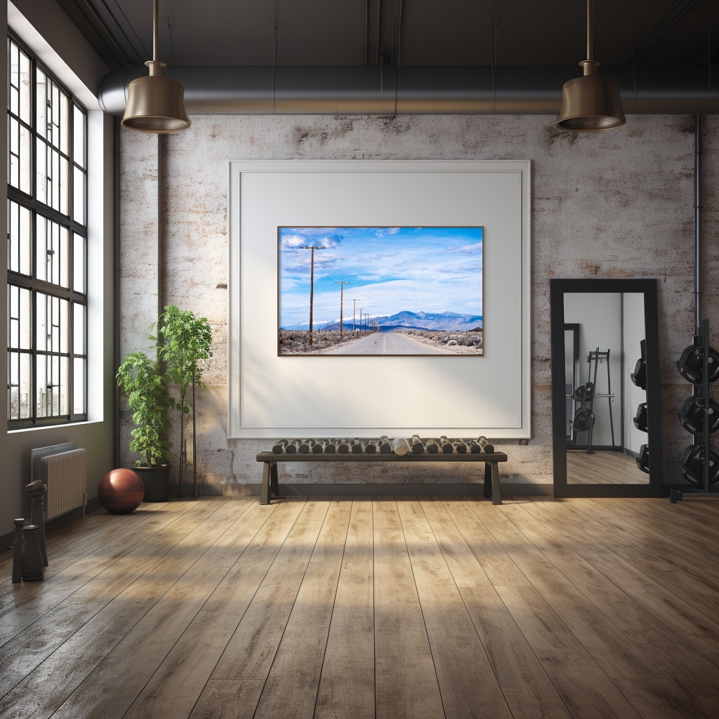 This photograph juxtaposes the human-made and natural worlds, highlighting the infrastructure's intrusion into untouched landscapes. It evokes themes of isolation, journey, and the relationship between human progress and the enduring natural environment. Through its meticulous perspective and harmonious color palette, the image invites viewers to contemplate the vastness of nature and the paths we carve within it.