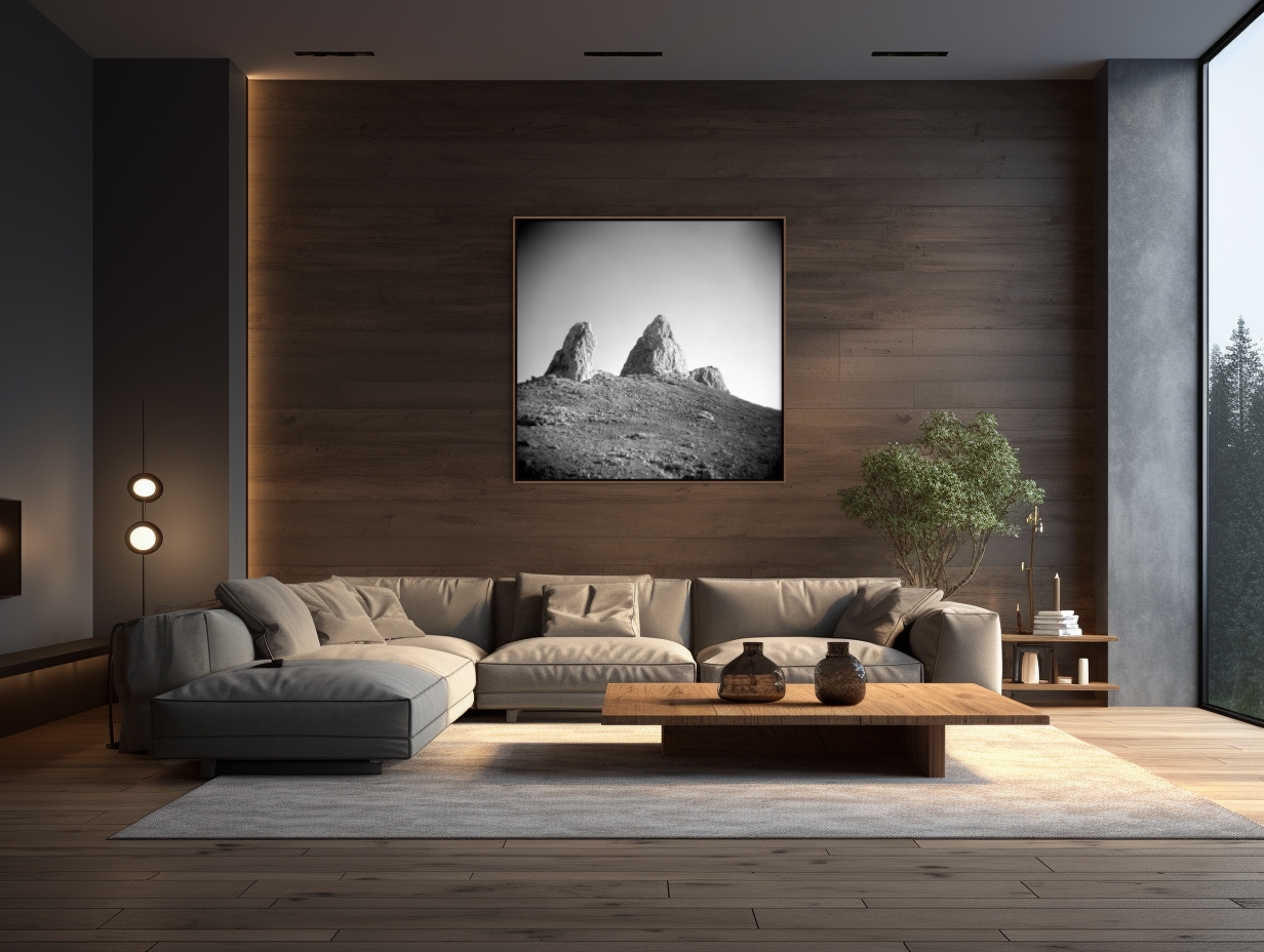 This work invites viewers to reflect on the grandeur and resilience of geological forms, while its sparse composition leaves space for personal interpretation and emotional engagement. The absence of any human presence further accentuates the pristine and unyielding character of the landscape, positioning the rock formations as silent, eternal sentinels within an otherwise empty environment.