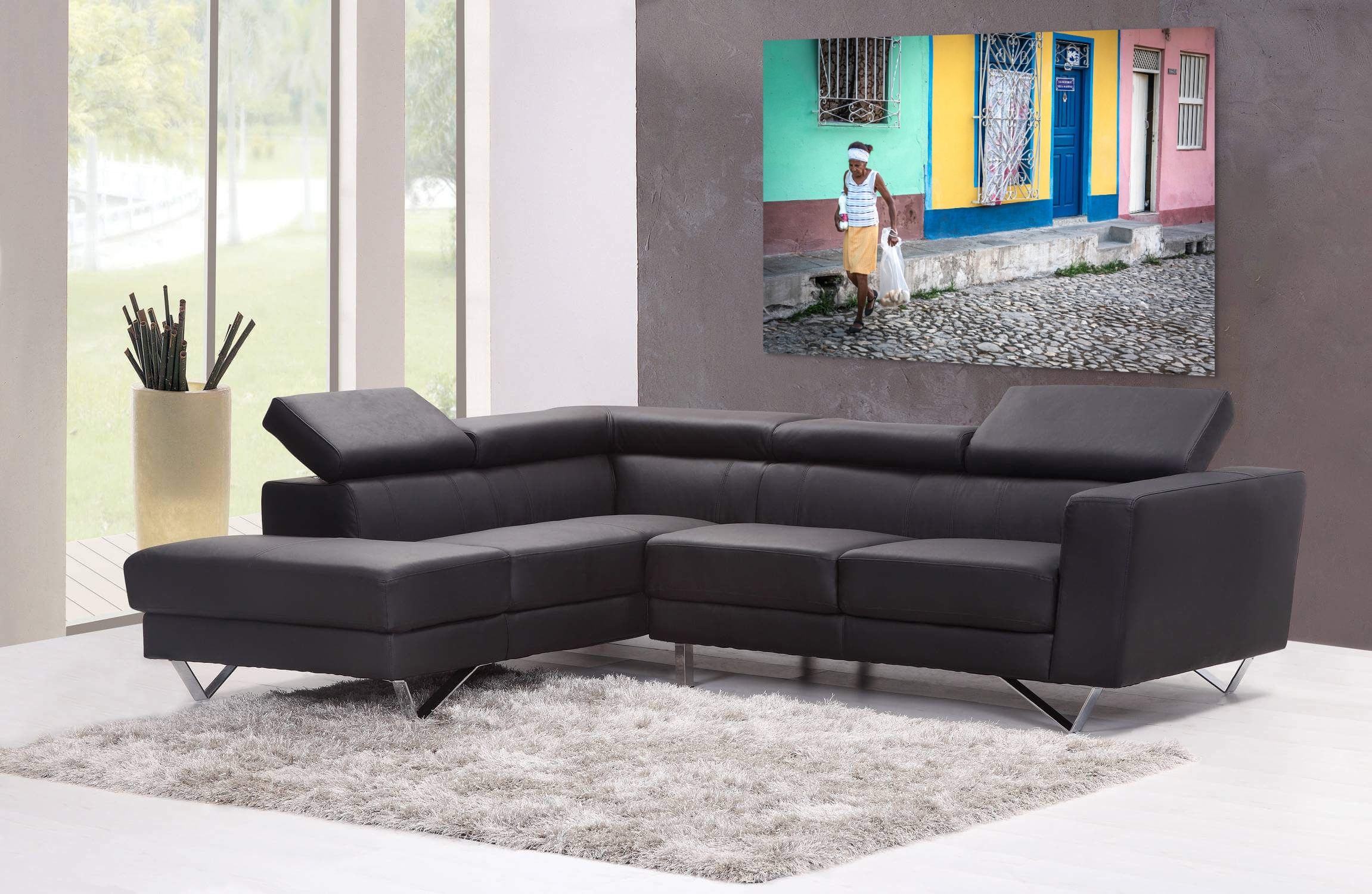 The image skillfully contrasts the vibrancy of the architectural backdrop with the humble, everyday activity of the woman. This photograph not only showcases the rich color palette typical of the locale but also tells a story of daily life and resilience. The textures of the cobblestones and the weathered walls add depth and character, inviting viewers to explore the rich details woven into this evocative composition.