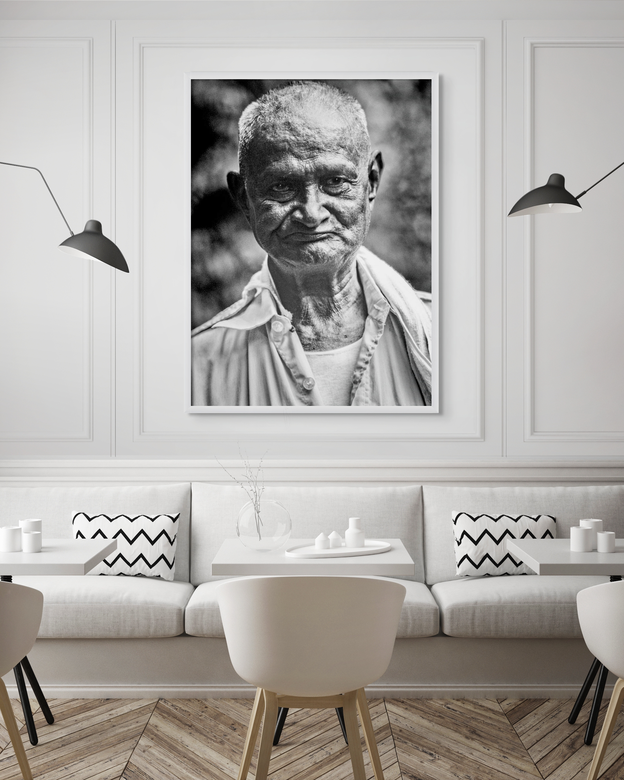 The softly blurred background contrasts with the sharp focus on the subject, enhancing the portrait’s emotional depth and inviting viewers to ponder the stories behind the visage. This work serves as a powerful tribute to human fortitude and the beauty found within the passage of time.
