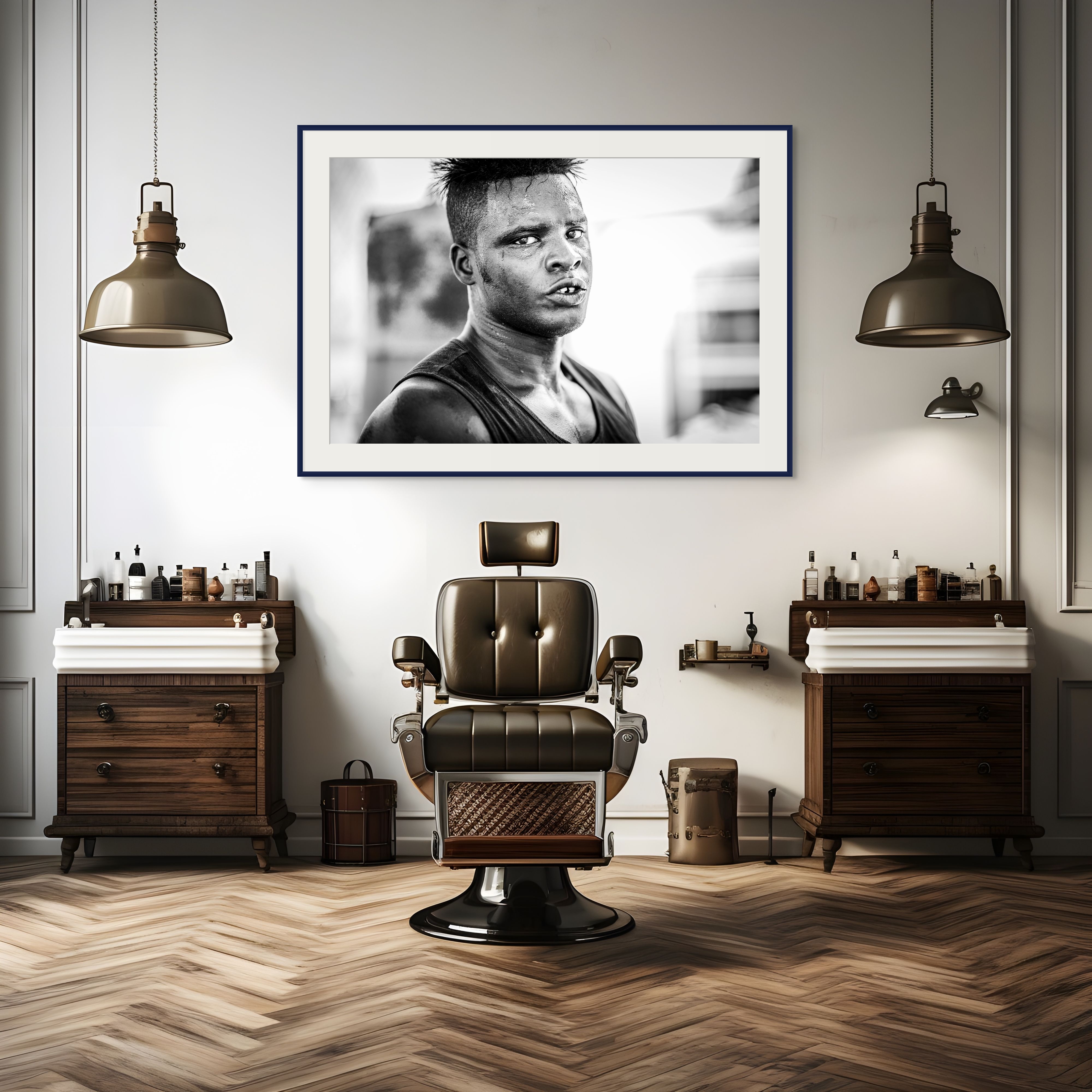 This photograph excels in conveying a story of resilience or exertion, encapsulating a moment of vulnerability and strength. The composition is both intimate and provocative, inviting the viewer to ponder the narrative behind the man’s expression.